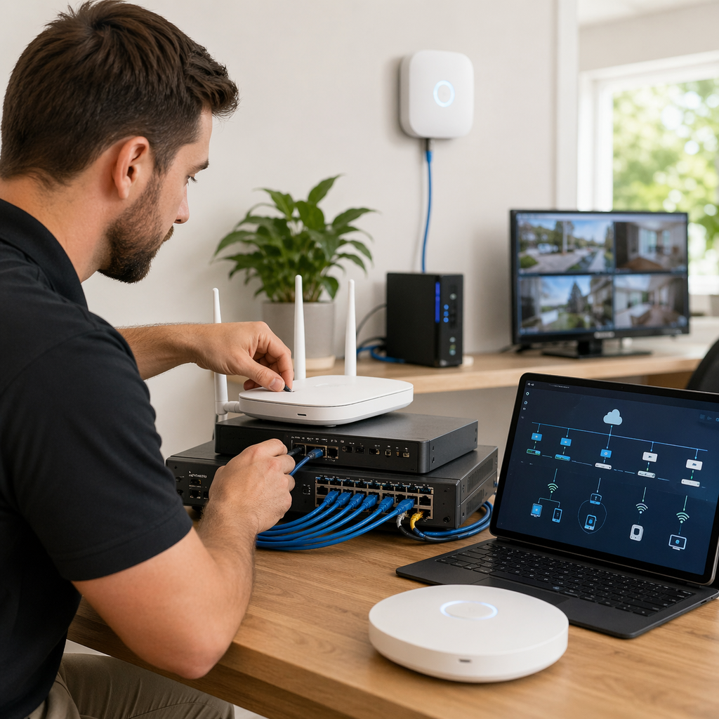 We help residential, commercial, and industrial clients with clean, dependable technology setups. From network installation and structured cabling to security cameras, TV mounting, and backup power, our team delivers practical solutions built for daily use.